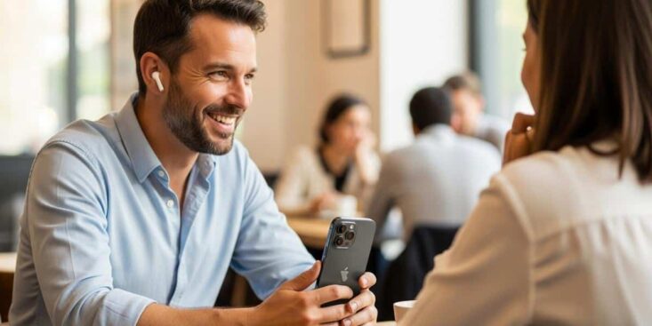 Ouvrez l’app Traduction, puis sélectionnez les deux langues. Activez le mode conversation pour alterner les tours de parole. Ensuite, positionnez l’iPhone entre vous et l’autre personne. Ainsi, les micros captent mieux et la sortie reste claire dans les AirPods.