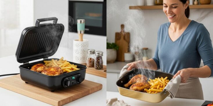 Nos essais en cuisine confirment un point clé. Avec la friteuse Moulinex, les cuisses de poulet sortent juteuses, tandis que la peau devient bien dorée. De plus, des épices sèches collent mieux qu’une marinade très liquide. Ainsi, un repos de dix minutes avant service améliore la tenue.