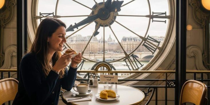 Dans un musée de Paris, ce café caché derrière l’horloge marie Art nouveau, vue sur la Seine et pause gourmande au calme.