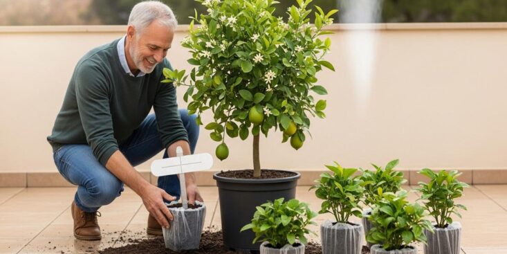 Citronnier en pot plus robuste grâce à une astuce maison qui canalise l’arrosage et protège les racines. Facile, réversible.