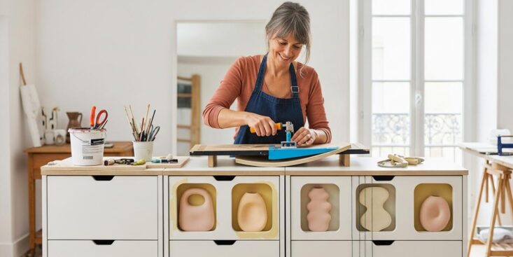 Le principe est simple : partir d’un meuble standard pour créer quelque chose d’unique. En effet, cette transformation spectaculaire repose sur une technique accessible à tous. Les courbes apportent une touche sculpturale qui attire immédiatement le regard.