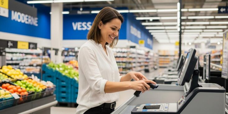 Par ailleurs, un meuble frais dédié aux fruits et légumes fait son apparition. Les caisses automatiques sont équipées de caméras capables de détecter les produits. Ce niveau de modernisation marque une vraie rupture avec l’image discount classique.